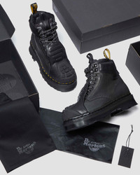 The latest 14XX experiment. Industrial protective aesthetics distorted and exxaggerated. A 3-eye shoe constructed from water-resistant, full-grain Tailgate leather with a maxximalist silicone and leather lace guard across the vamp. Fortified with a steel toe cap and abrasion-resistant TecTuff across the heel. Fitted with a comfort focused padded collar and SoftWair insole. Set on a new, subverted tread outsole. Finished with monochrome hardware, reflective laces, and dual heel loops. Construction Goodyear Welted - the upper and sole are heat-sealed and sewn together, providing more comfort and durability for years to come. Product code 31841009