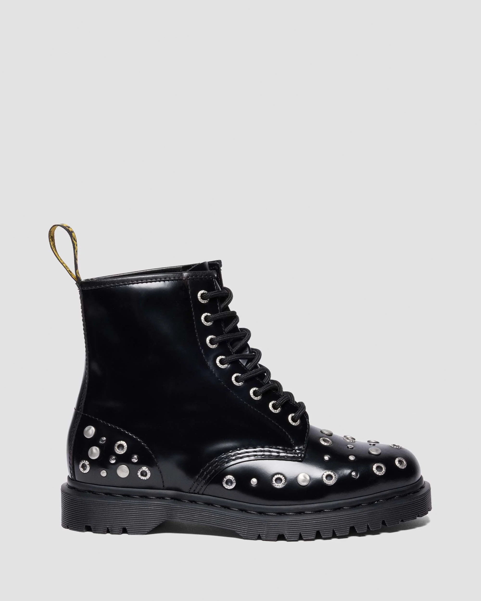Add an unexpected edge to any outfit with our studded 1460 boot. A classic silhouette redesigned with unrestrained rivets, studs, and hardware for an alternative angle. Cut from soft-to-touch Buttero leather that’s strong enough to go the distance. Set on a DMS sole and secured with a black-on-black welt stitch. Each pair is finished with our unmissable AirWair heel loop. Material A full-grain, smooth leather, with a satin gloss and luxurious supple feel. Construction Goodyear Welted - the upper and sole are heat-sealed and sewn together, providing more comfort and durability for years to come. Product code 42319001