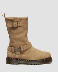 Unbridled texture at full throttle. The Anistone Hi biker boot is reimagined in Bronx Suede leather for expression without rules. Rugged, relaxed and ready to hit the open road, Bronx Suede imprints with every crease and scuff to tell a unique story. We decorated it with signature Anistone detailing branded antique brass plates and an adjustable buckle. The boot is tagged with our scripted heel loop and yellow welt stitching and sits on a trans Bex sole for extra height. Material Bronx Suede is a heavyweight, firm handle suede with an oily finish giving a greasy touch to the surface. Construction Goodyear Welted - the upper and sole are heat-sealed and sewn together, providing more comfort and durability for years to come. Product code 42588200