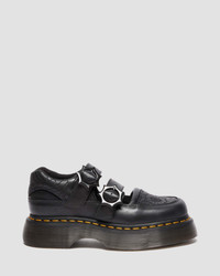 Not your average Mary Jane. This limited-edition silhouette from the DM’s x Wednesday collection takes a gothic classic and gives it a twisted edge. Crafted from a tactile mix of Nappa and Lux leather, the shoe is embroidered with stained-glass-inspired detailing - a nod to the dorm room windows at Nevermore Academy. The heel is debossed with the Wednesday logo, while the custom buckle design reflects the sharp, distinctive aesthetic of the series. Finished with our classic yellow welt stitching and set on an exaggerated, empowering sole. Material Nappa Lux - a classic nappa leather — soft and smooth to the touch. Construction Goodyear Welted - the upper and sole are heat-sealed and sewn together, providing more comfort and durability for years to come. Product code 41855001