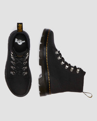 Tough enough for anything. Comfortable enough for every day. These boots are the ultimate in all-weather utilitarian footwear. Built from a mix of tough-yet-light poly and Ajax leather, the 6-tie boots are decked out with tonal D-rings and hiker hooks alongside our signature markings. - Ajax is a PU-coated split leather with a subtle geometric emboss - Extra Tough Poly is an extra tough, synthetic woven fabric with exceptional strength and elasticity - Utility-inspired — with DM’s attitude. Our relaxed Tract outsole is tough and light, with pavement-ready durable cemented construction and deep indentations for improved traction - Construction - Made with a comfortable, durable cemented construction - Footbed - Wider and a more rounded toe shape Material Ajax + Extra Tough Poly - a PU-coated split leather with a subtle geometric emboss, paired with an extra tough, synthetic woven fabric with exceptional strength and elasticity. Construction Cemented - the sole is cemented to the upper, durable and flexible for all day comfort. Product code 31924001