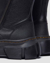"Big sole. XL comfort. The DMXL sole is made to move — looks tough, feels easy. This workwear-inspired boot stands on our blown-out DMXL sole. Combining lightweight EVA with durable PVC pods and an exaggerated tread. Fitted with a SoftWair insole for cushioning and support on the move. The upper is made from soft Lunar and Rubber Grain leather with extra padding, double zips, and pull tabs for easy on/off wear. Signed with yellow stitching and our black and yellow heel loop." Material Lunar - A full grain, tumbled leather with a silky milled texture. Construction Cemented - the sole is cemented to the upper, a durable and flexible construction for all day comfort. Product code 41192001