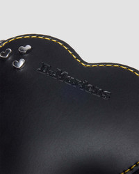Heart-shaped and heavy-duty. The Heart Key Ring Purse plays with shape and reinforces it with renowned DM’s durability. Crafted from rigid Kiev leather, a coated version of our classic Smooth leather with a slight sheen finish, this purpose-built silhouette holds smaller items and can be used as a bag charm. Decorated with a contrasting silver zip, attachment ring and clasp, and heart studs. It is finished signature DM’s markings: a central logo, detachable woven AirWair wrist strap and yellow stitching. Material Kiev - A PU coated version of our classic Smooth leather. Product code 41430001