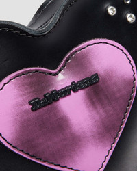 Don’t theorize - accessorize. This Micro Heart Bag may be small, but it’s big enough to hold your passion for fashion. The heart-shaped bag is crafted from black Kiev and purple Arcadia leather, finished with diamante detailing and studded accents. Mix and match with two different crossbody straps – a chain strap and a Bratz purple webbing strap. The zip-up bag is finished with a Bratz dog tag charm and Dr. Martens hardware. Material Kiev - PU Coated Version of our classic Smooth leather. Arcadia - Hi Shine Classic 2 tone rub off leather - the 2 tone effect is created in the final shoeroom treatment to reveal contrast colour particulary in toe area. Product code 42384001