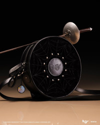 Dark romanticism distilled into a circular backpack. Built from black velvet and grounded with a hard-wearing black Kiev leather base. A spiderweb motif radiates across the front panel in intricate embroidery, punctuated with silver cone studs and debossed DM’s x Wednesday branding. Velvet zip pulls and silver-tone hardware elevate the gothic detailing, while a removable stained-glass window charm channels the eerie elegance of Nevermore Academy. Finished with a hidden back panel pocket and adjustable straps for styling your own way. Material Kiev leather is a modified version of our classic Smooth leather, with a PU coating, polished surface and slight sheen. Velvet is a brushed fabric with a slight pile that features a soft, silky tough and attractive sheen. Product code 43063001