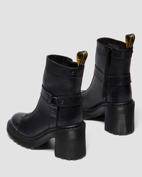 Heeled, harnessed and headstrong. The Spence Harness boot embodies our relentless attention to detail and craft. Built with Sendal, a smooth yet rugged leather, we upgraded the boot with a wraparound harness for extra edge and an additional leather placement on the toe that exaggerates the silhouette’s shape. Monochrome stitching runs across the upper and welt, and signature DM’s detailing includes our scripted heel loop and branded zip. The boot is stacked tall on a black grooved sole and towering flared heel for maximum impact. Material This semi-Aniline, natural-look Nappa Leather features a smooth full-grain finish. Construction Cemented - the sole is cemented to the upper, a durable and flexible construction for all day comfort. Product code 42614001