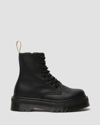 A full-volume revamp of our iconic original boot, the Jadon Boot retains all the 1460's signature details — 8-eyes, grooved edges and welt stitching — and adds a towering platform sole. In a monochrome vegan-friendly colorway, this edition loses the leather but none of the attitude. With a side zip for easy wear, the boot has a vegan scripted heel loop that contrasts sharply with the all-black silhouette. - A fearless evolution of our 8-eye boot — elevating the silhouette to unmissable new heights. Stand taller. Feel bolder - Felix Rub Off is our go-to vegan material – a synthetic material with a matte finish - Standing at 2 inch with a chunky commando tread — the Quad Retro sole was built to empower. Seen on our smash-hit Jadon boot — for people who aren't afraid to stand tall - Construction - Made with our Goodyear-welted lines that are heat-sealed at 700˚C and reinforced with our signature welt stitch - Sole Height - Platform height: 1 1/2 in; Heel height: 2 in - Footbed - Slimmer and a more tapered shape Material Vegan-friendly. A synthetic material, which is soft and supple, and has a subtle finish. Learn more about our vegan line up. Construction Goodyear Welted - the upper and sole are heat-sealed and sewn together, providing more comfort and durability for years to come. Product code 25310001