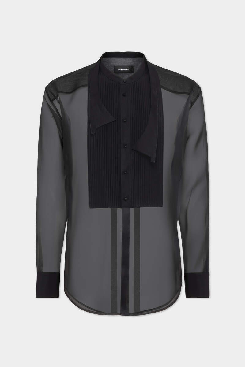 - PRODUCT ID : S74DM0925S76445900 - MADE FROM SHEER SILK ORGANZA - PLEATED PLASTRON - BUTTON CLOSURE - BUTTONED CUFFS - FAKE BOW TIE DETAIL PRIMARY FABRIC: 100% SILK; SECONDARY FABRIC: 100% COTTON A sultry twist on black-tie elegance. This shirt spices up the classic dinner shirt in daring sheer silk organza. An undone bow tie detail drapes loosely over the shoulders for a care-free touch.