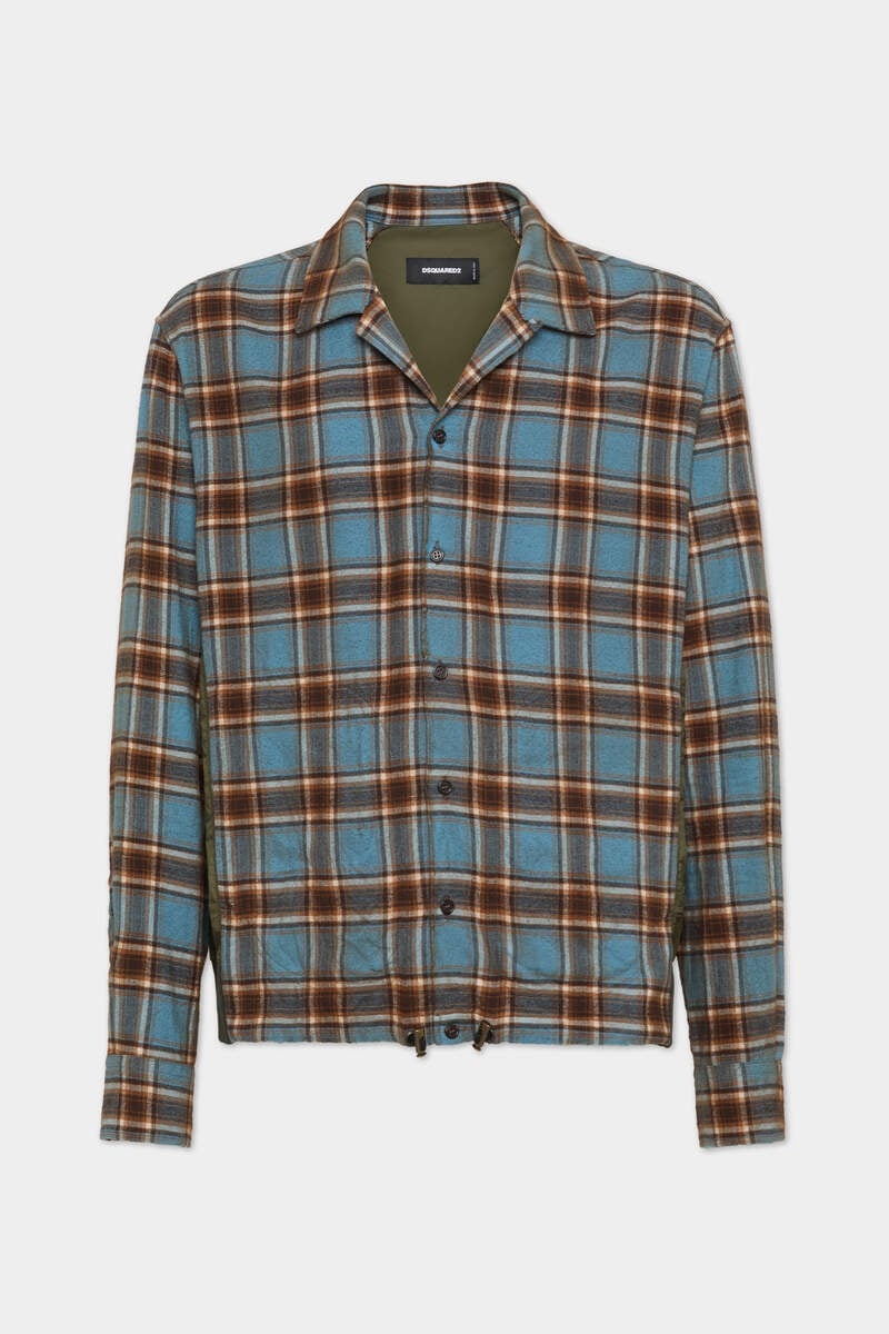 - PRODUCT ID : S74DM0927D35314001F - MADE FROM CHECKED COTTON FLANNEL - CUBAN COLLAR - BACK NYLON INSERT - BUTTON CLOSURE - BUTTONED CUFFS - FRONT TOGGLE HEM - BACK ELASTICATED HEM PRIMARY FABRIC: 100% COTTON; SECONDARY FABRIC: 100% POLYESTER; APPLICATION: 100% POLYESTER Plaid meets bomber in a seamless mash-up of styles. This shirt enriches a classic checked flannel design with a shiny fabric back. Toggles at the front waist and a wide elasticated hem at the back keep the cold air out.