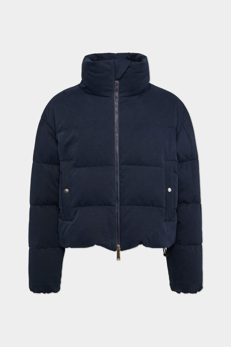 - PRODUCT ID : S74AM1629D35319524 - MADE FROM COTTON TWILL - STRIPED QUILTING - TWO-WAY ZIP CLOSURE - SNAP BUTTON POCKETS - TOGGLE DRAWSTRING HEM - CHECKED LINING WITH CANADIAN LANDSCAPE PRINT PRIMARY FABRIC: 97% COTTON, 3% ELASTANE-SPANDEX; LINING: 80% VIRGIN WOOL, 20% POLYAMIDE-NYLON; SLEEVE LINING: 100% POLYESTER; POCKET LINING: 100% COTTON; PADDING: 100% POLYESTER A cool puffy silhouette with warm quilting: this jacket ticks all the boxes for cold-weather urban looks. A checked lining with statement landscape print celebrates our Canadian heritage.