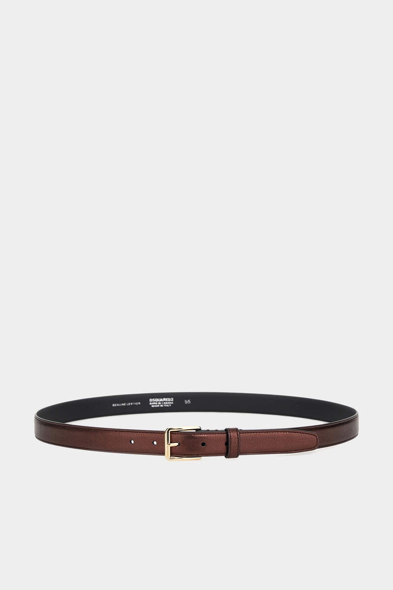 - PRODUCT ID: BEM0541347034375078 - METALLIC LEATHER BELT - ADJUSTABLE METAL BUCKLE - MADE IN ITALY 100% ZAMAK. SHAFT: 100% LEATHER This brushed leather belt with pin buckle has a classic image, but differs in one detail. It is slimmer than the traditional measurement. This feature allows it to be worn together with other belts to create an effect of overlaps and plays of colour.
