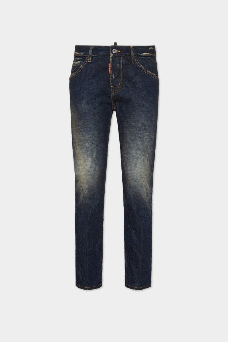 - PRODUCT ID : S75LB1075D30011470 - MADE FROM STRETCH COTTON DENIM - DARK BLUE WASH - SLIM FIT - LOW RISE - FIVE-POCKET STYLE - DISTRESSED FINISH - DUSTY EFFECT - RED DSQUARED2 LABEL - DSQUARED2 PATCH