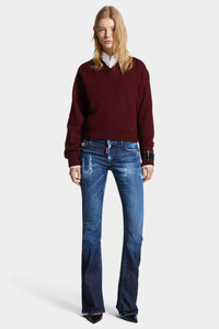 - PRODUCT ID : S75LB1077D30010470 - MADE FROM STRETCH COTTON DENIM - DARK BLUE WASH - MID RISE - FLARED LEG - FIVE-POCKET STYLE - DISTRESSED FINISH - WHISKERING EFFECTS - RED DSQUARED2 LABEL PRIMARY FABRIC: 98% COTTON, 2% ELASTANE-SPANDEX; POCKET LINING: 65% POLYESTER, 35% COTTON