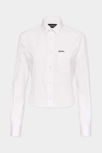 - PRODUCT ID: S75DL0676S36275100 - COTTON POPLIN SHIRT - BREAST POCKET - LETTERING EMBROIDERED AT LEFT CHEST - FIT: CROPPED SLIM - BUTTON FASTENING - STRAIGHT POINT COLLAR - REAR PLEATED - CURVED HEM - MADE IN ITALY FABRIC: 100% COTTON Dsquared2 reinterprets the white poplin shirt in a current and fresh version. The cropped fit suggests wearing low-waisted jeans with major buckle belts. A pair of cowboy boots are highly recommended.