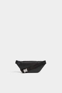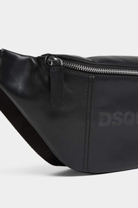 - MADE FROM LEATHER - ZIP CLOSURE - BACK ZIP POCKET - D-RING DETAIL - ADJUSTABLE BELT - CLIP BUCKLE CLOSURE - TONAL DSQUARED2 PRINT EXTERNAL MATERIAL: 100% CALFSKIN; LINING: 100% COTTON Keep it sleek with this black leather belt bag: perfect for travel when you need to keep small essentials close. Embellished with tonal Dsquared2 lettering across the front for a chic monocolour finish.