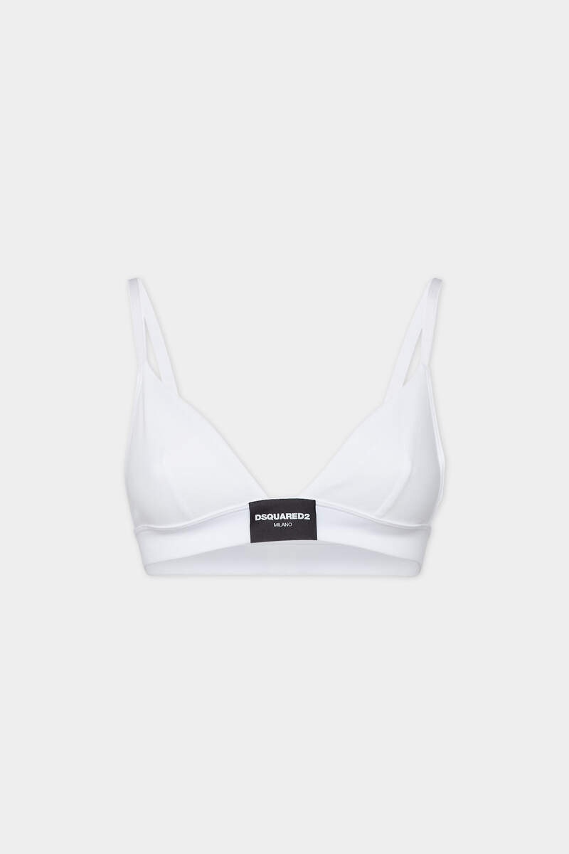 - MADE FROM STRETCH COTTON - ELASTICATED BAND - FRONT DSQUARED2 MILANO PATCH - ADJUSTABLE CLIP CLOSURE 94% COTTON, 6% ELASTANE Refresh your basics with this comfy triangle bra, made from cotton jersey with just the right amount of stretch. Styled with a tonal band under the bust with signature Dsquared2 Milano patch.