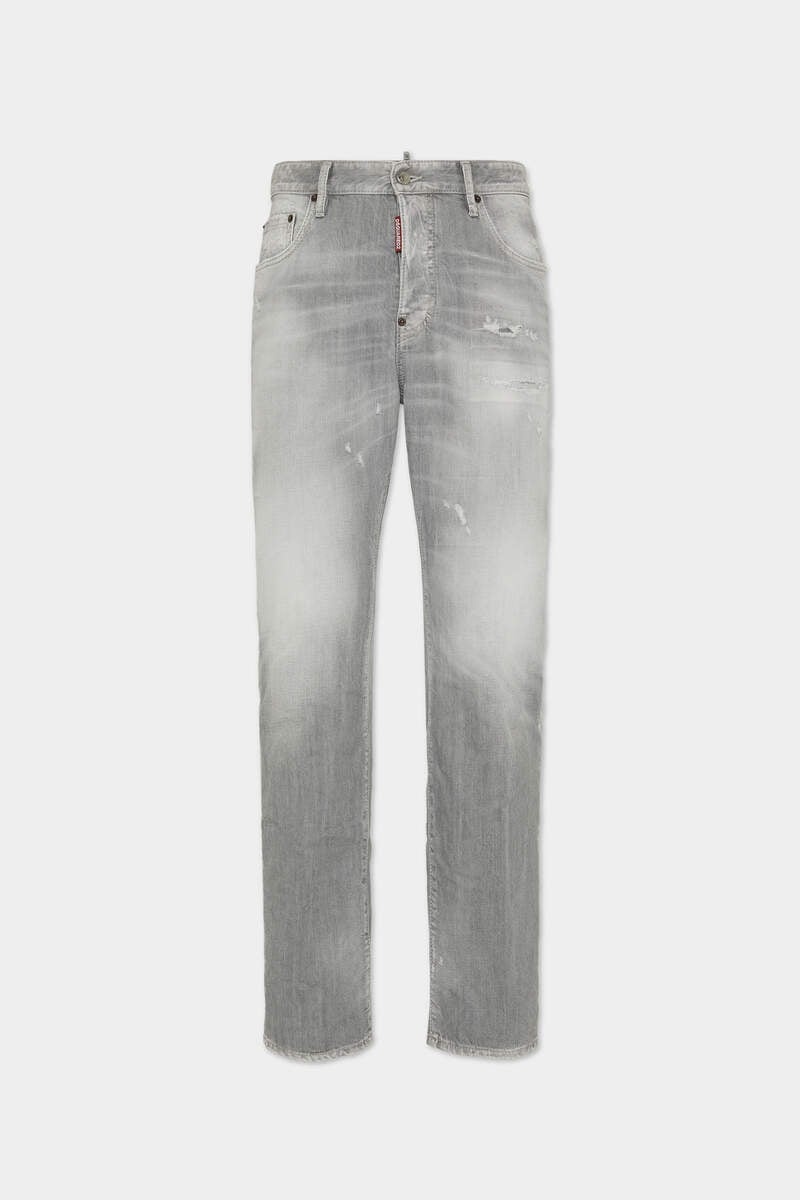- PRODUCT ID : S74LB1755S30260852 - MADE FROM STRETCH COTTON DENIM - GREY WASH - REGULAR FIT - STRAIGHT LEG - FIVE-POCKET STYLE - DISTRESSED FINISH - WHISKERING EFFECTS - RED DSQUARED2 LABEL - DSQUARED2 PATCH