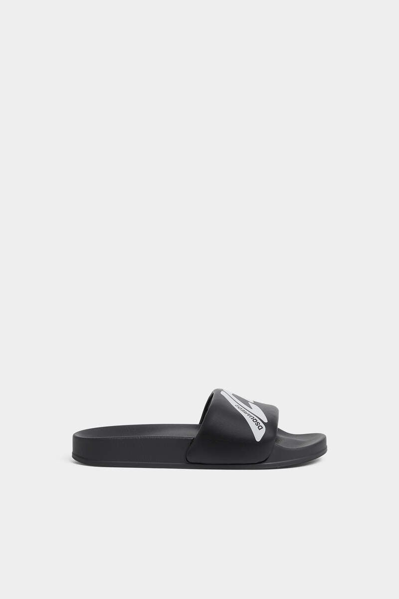- WIDE LOGO BAND - SHAPED FOOTBED - POLYURETHANE SOLE - ICON NEW GENERATION COLLECTION UPPER: 55% POLYURETHANE;,45% POLYESTER; SOLE: 100% POLYURETHANE Stride into summer with confidence in these comfy pool slides, branded with bold ICON logo straps for statement Dsquared2 attitude. Perfect with skirts, dresses, shorts and swimmers... take your pick.