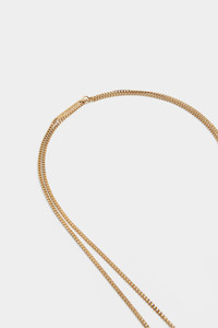 - METAL CHAIN NECKLACE - CROSS CHARMS - GOLD FINISH - LOBSTER CLASP 100% BRASS Elegant but edgy: make a statement in this double-strand chain necklace, boasting a timeless gold-tone finish and dainty cross outline charms. For everyday looks with attitude.