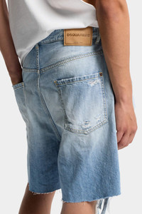 - PRODUCT ID : S71MU0890D30011470 - MADE FROM COTTON DENIM - DISTRESSED FINISH - CONCEALED CLOSURE - FIVE-POCKET STYLE - RED DSQUARED2 LABEL - DSQUARED2 PATCH PRIMARY FABRIC: 100% COTTON; POCKET LINING: 65% POLYESTER, 35% COTTON; APPLICATION: 100% CALF LEATHER Where summer adventure begins. These Surfer Shorts scream summer denim rebel. The statement rip from halfway down give them a rebellious and lived-in feel. Pair them with a cigarette tee and an oversized shirt for a look that's perfect for a bonfire on the beach.
