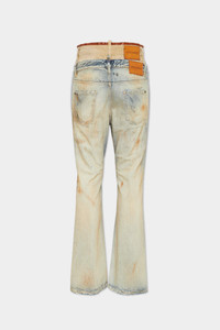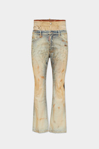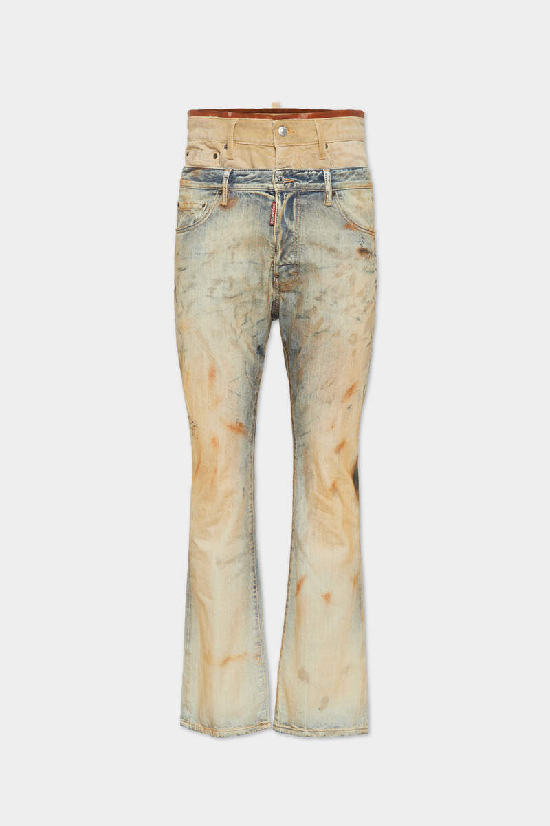 - PRODUCT ID : S71LB1662D30011470 - MADE FROM COTTON DENIM - LAYERED DESIGN - BOOTCUT FIT - LOW RISE - FIVE-POCKET STYLE - DIRTY TREATMENT - RED DSQUARED2 LABEL - DSQUARED2 PATCHES PRIMARY FABRIC: 100% COTTON; SECONDARY FABRIC: 100% CALF LEATHER; POCKET LINING: 65% POLYESTER, 35% COTTON; APPLICATION: 100% CALF LEATHER Your favourite five-pocket style, but edgier: these bootcut jeans leave their mark with an unconventional layered design and an intentionally grubby finish. Pair with sneakers or boots to suit the occasion.