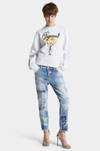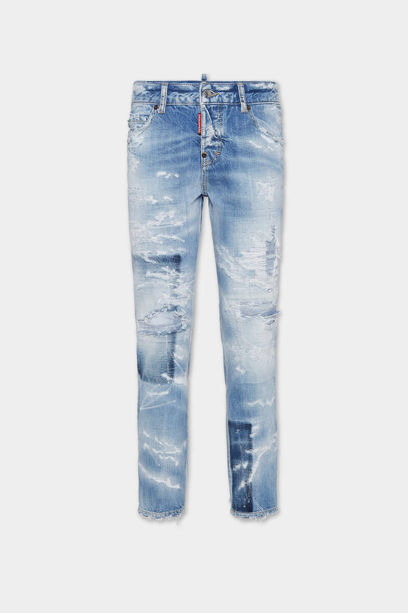 - PRODUCT ID : S72LB0883D30011470 - MADE FROM COTTON DENIM - LIGHT BLUE WASH - SLIM FIT - LOW RISE - FIVE-POCKET STYLE - DISTRESSED FINISH - DARKER PATCHES - RED DSQUARED2 LABEL - DSQUARED2 PATCH PRIMARY FABRIC: 100% COTTON; POCKET LINING: 65% POLYESTER, 35% COTTON Get the cool girl look in these light-wash jeans, toughened up with slashes and zig-zag stitching for a lived-in look. Team with heels or sneakers to suit the occasion.