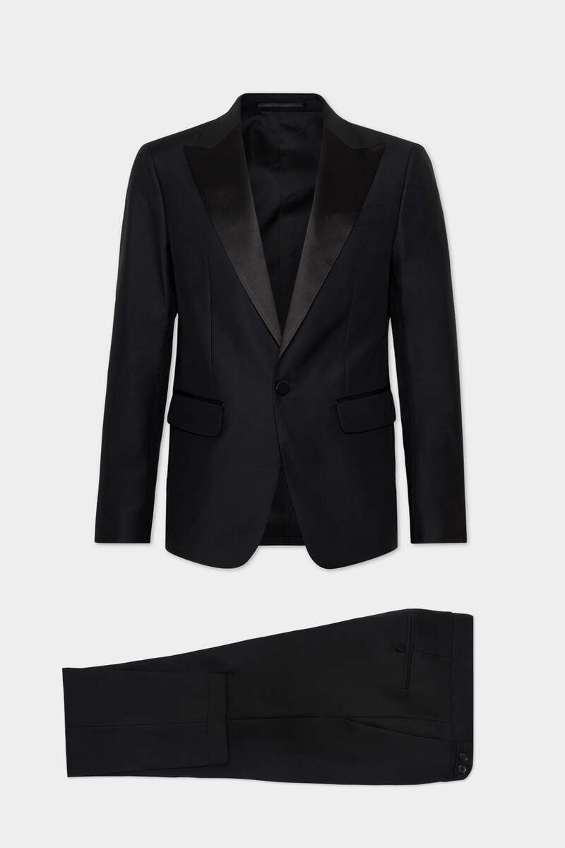 - MADE FROM A SILK AND WOOL BLEND - TWO-PIECE DINNER SUIT - SINGLE-BREASTED JACKET - PEAK LAPELS - CHEST WELT POCKET - LOWER FLAP POCKETS - BUTTONED CUFFS PRIMARY FABRIC: 65% VIRGIN WOOL, 35% SILK; SECONDARY FABRIC: 100% SILK; LINING: 100% POLYESTER; SLEEVE LINING: 60% VISCOSE-RAYON, 40% POLYESTER; POCKET LINING: 100% COTTON Sleek, chic, and a must-have for the party season. This dapper dinner suit is crafted from a luxurious silk-wool blend, styled with timeless peak lapels. Team with a pair of patent Oxford lace-ups and you're good to go.