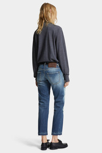 - PRODUCT ID : S75LB1073D30011470 - MADE FROM COTTON DENIM - MID BLUE WASH - STRAIGHT LEG - LOW RISE - FIVE-POCKET STYLE - DISTRESSED FINISH - WHISKERING EFFECTS - RED DSQUARED2 LABEL - DSQUARED2 PATCH PRIMARY FABRIC: 100% COTTON; POCKET LINING: 65% POLYESTER, 35% COTTON; APPLICATION: 100% CALF LEATHER