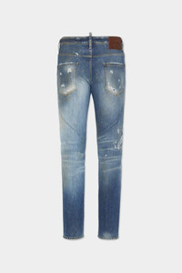 - PRODUCT ID : S74LB1748D30011470 - MADE FROM COTTON DENIM - MID BLUE WASH - SLIM FIT - STRAIGHT LEG - FIVE-POCKET STYLE - DISTRESSED FINISH - WHISKERING EFFECTS - DIRTY TREATMENT - LEATHER PATCHES - RED DSQUARED2 LABEL - DSQUARED2 PATCH