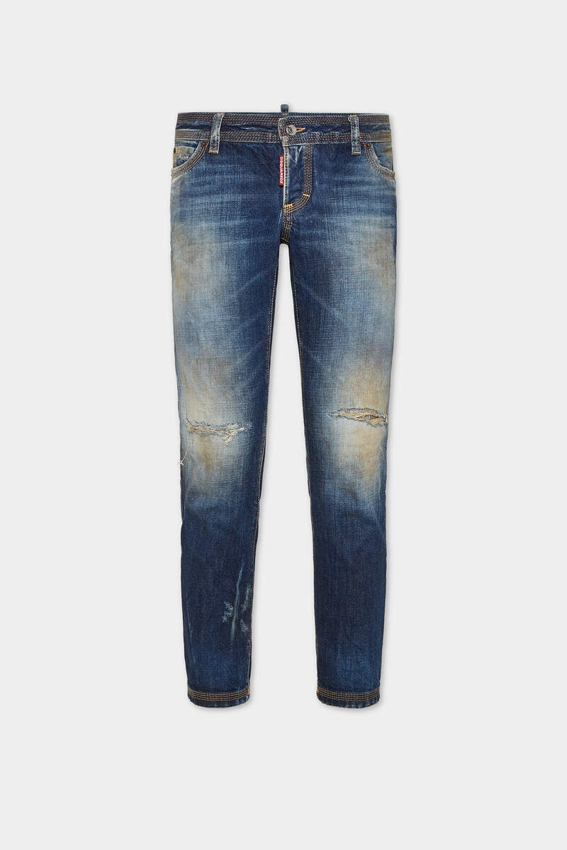 - PRODUCT ID : S72LB0875D30011470 - MADE FROM STRETCH COTTON DENIM - MID BLUE WASH - SKINNY FIT - LOW RISE - FIVE-POCKET STYLE - DISTRESSED FINISH - DIRTY TREATMENT - RED DSQUARED2 LABEL - DSQUARED2 PATCH PRIMARY FABRIC: 100% COTTON; POCKET LINING: 65% POLYESTER, 35% COTTON; APPLICATION: 100% CALF LEATHER A versatile mid blue wash and a figure-hugging skinny fit: these low-rise jeans are an all-round essential that go with everything. Toughened up with distressing and fading for a grubby lived-in look.