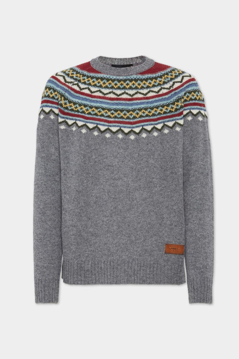 - PRODUCT ID : S74HA1570D13156962 - MADE FROM VIRGIN WOOL - CREW NECK - NORDIC DETAILING - LEATHER DSQ2 PATCH