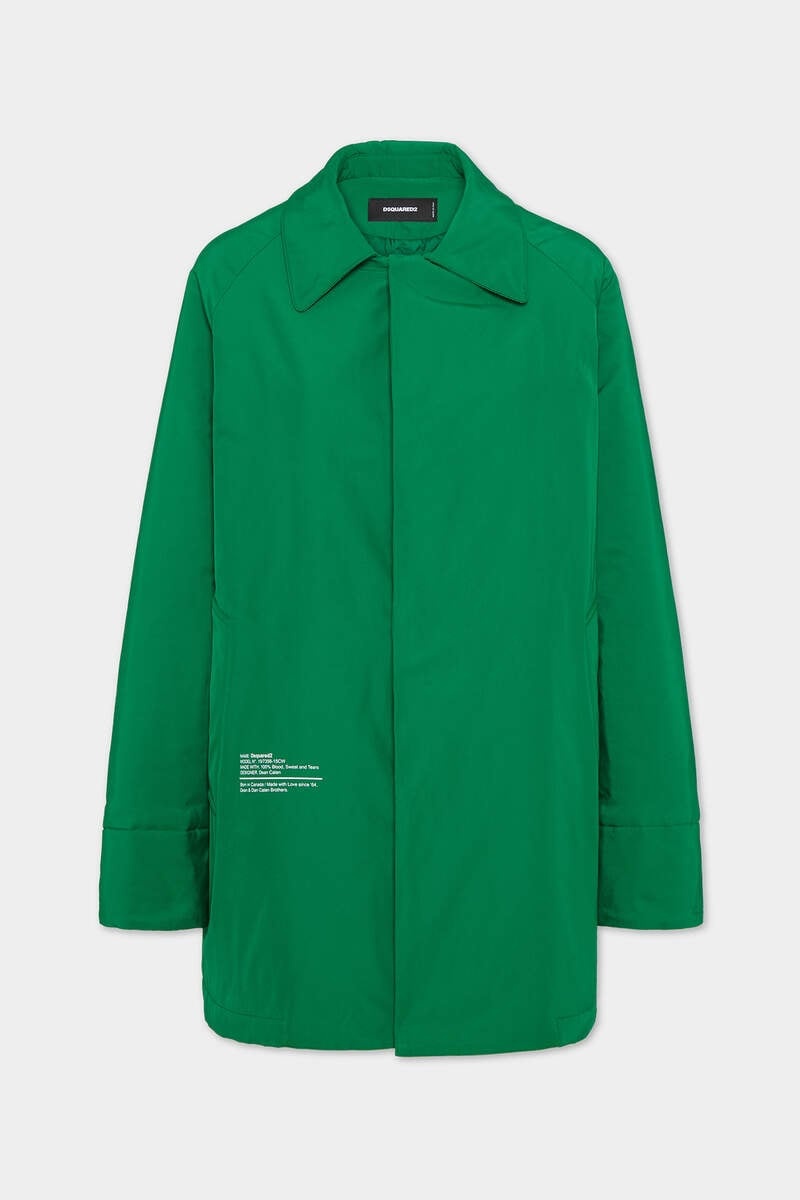 - PRODUCT ID : S75AA0443D35311638 - MADE FROM WATERPROOF FABRIC - CLASSIC COLLAR - CONCEALED CLOSURE - BACK STORM FLAP - "BLOOD, SWEAT AND TEARS" PRINT