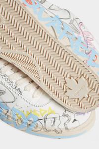 - PRODUCT ID : SNM045101504836M037 - MADE FROM PERFORATED LEATHER - FUZZY LACES - ALL-OVER GRAFFITI PRINTS - TRAIL RUNNER RUBBER SOLE - DSQUARED2 LABEL ON THE TONGUE