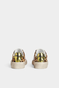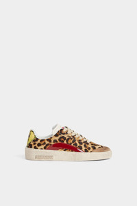 - PRODUCT ID : SNW032302208448M4191 - MADE FROM CAVALLINO LEATHER - LEOPARD PRINT - LACE-UP CLOSURE - METALLIC LEATHER HEEL TAB - TRAIL RUNNER RUBBER SOLE - DSQUARED2 LABEL ON THE TONGUE - MAPLE LEAF ON THE HEEL TAB - "DEAN" & "DAN" PRINTS