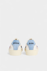 - PRODUCT ID : SNM047218908706M1463 - MADE FROM LEATHER - LACE-UP CLOSURE - DENIM DETAILING - SUEDE DETAILING - CONTRAST SIDE STRIPES - DSQUARED2 LOGO ON THE TONGUE UPPER: 60% GOAT LEATHER, 20% CALF LEATHER, 10% COTTON, 10% POLYESTER; LINING: 40% COTTON, 30% GOAT LEATHER, 20% CALF LEATHER, 10% POLYESTER; SOLE: 100% THERMOPLASTIC RUBBER Crafted from soft perforated leather with denim overlays, this collegiate-style sneaker is inspired by our Legendary 551. The streamlined, low-top profile promises versatility, while the rainbow-hued side stripes ooze personality and verve with every step.