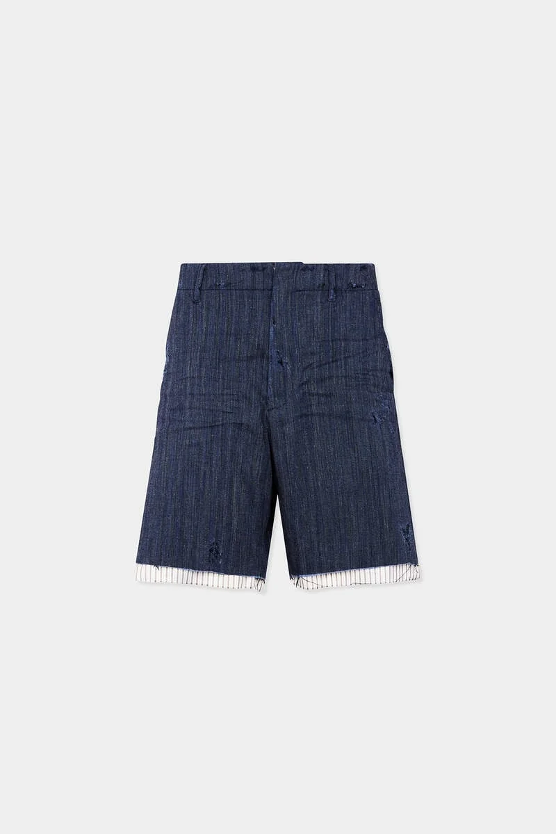 - PRODUCT ID : S71MU0876D35464002F - MADE FROM STRETCH COTTON LINEN - DISTRESSED FINISH - STRIPED PATTERN - CONCEALED CLOSURE - HIP POCKETS - BACK WELT POCKETS - METAL LOGO PLAQUE PRIMARY FABRIC: 41% COTTON, 39% POLYESTER, 17% LINEN, 3% ELASTANE-SPANDEX; LINING: 100% POLYESTER The Dsquared2 twist on tailored summer style. Crafted in cotton herringbone, these shorts blend refined craftsmanship with raw attitude through distressed and frayed edging. An upturned lining adds a tailored finish, perfect for styling with a shirt and pullover to bring a preppy look with an edge.
