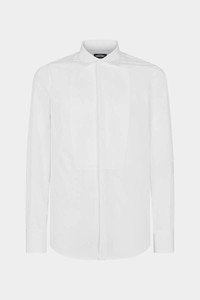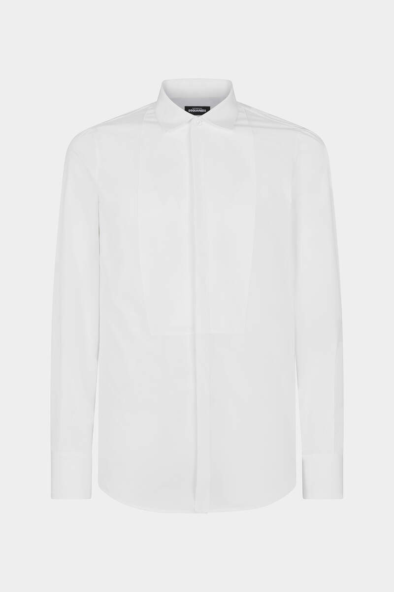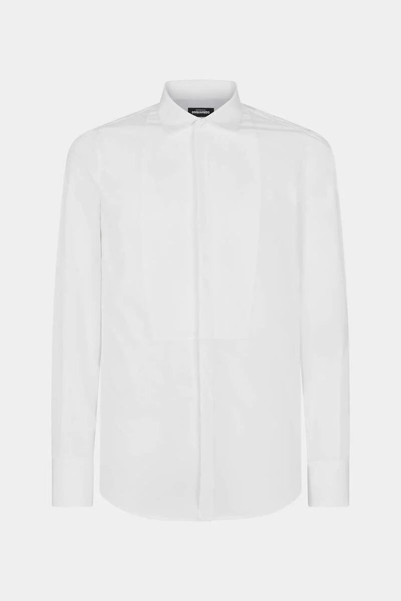 - PRODUCT ID: S74DM0662S42381100 - STRETCH COTTON POPLIN SHIRT - SLIM FIT - CLASSIC COLLAR - FRONT PLASTRON - LONG SLEEVES - BUTTONED CUFFS - CONCEALED BUTTON CLOSURE - MADE IN ITALY PRIMARY FABRIC: 96% COTTON, 4% ELASTANE-SPANDEX. SECONDARY FABRIC: 100% COTTON The model is 6'2" tall and wears a size 38 If you love elegant staples, then the Slim Fit Tux Shirt is a must-have for the party season. This crisp shirt by DSQUARED2 exudes quintessential elegance. Pair with formal black trousers for a classic going-out look.