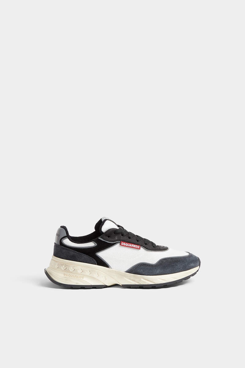 - MADE FROM LEATHER AND MESH - VINTAGE FINISH - LACE-UP CLOSURE - RUBBER RUNNING SOLE - DSQUARED2 LABEL ON THE TONGUE - RED DSQUARED2 LABEL UPPER: 10% PU, 40% CALFSKIN, 50% POLYESTER; LINING: 60% COTTON, 10% POLYESTER, 30% CALFSKIN; SOLE: 100% THERMOPLASTIC RUBBER Retro running style is on the cards with this low-top mesh and leather sneaker, hand-finished with a dirty treatment for a worn-in look. Pair with slouchy trousers or distressed denim for effortless throw-on-and-go attitude.