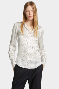 - PRODUCT ID : S72DL0771D35389001S - MADE FROM SILK SATIN - STAR PRINT - CONCEALED BUTTON PLACKET - BUTTONED CUFFS - METAL LOGO PLAQUE PRIMARY FABRIC: 100% SILK Embrace easy-going eveningwear in this long-sleeved shirt, crafted from silk satin with a sublime drape and showered in clusters of tiny stars. Embellished with a subtle metal logo plaque.