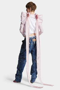 - PRODUCT ID : S72FB0240D35445238 - MADE FROM TAFFETA - PUFFY SHOULDERS - GATHERED SLEEVES - OVERSIZED BOW DETAILS - INVISIBLE ZIPS ON THE SLEEVES - DSQUARED2 X VAQUERA COLLAB PRIMARY FABRIC: 100% POLYESTER; APPLICATION: 88% VISCOSE-RAYON, 12% POLYESTER Take any outfit from simple to statement in this puff-shoulder shrug, caressing the arms in gathered taffeta. Oversized bow details cascade down the sides for added drama and romance.
