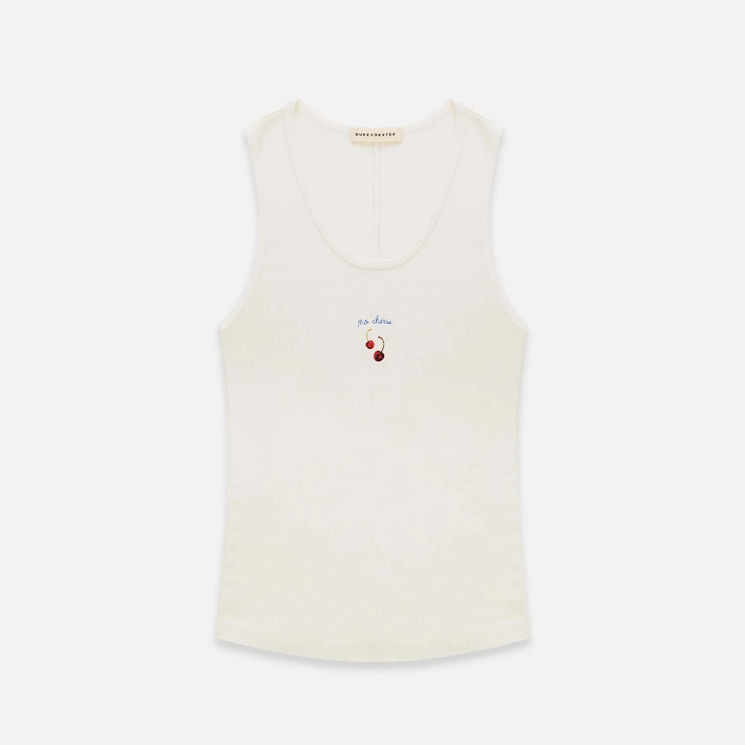 For our first collection of AW25, Duke Icons, we’ve revisited the prints that put us on the map. This Cherry Vintage White Vest features one of the originals, Ma Cherie – it debuted in ‘23, and has appeared in almost every collection since. It’s handmade from cotton and rib-knitted for a touch of stretch. SPECIFICATIONS Fit Slim Fit Composition 100% Cotton Detail Water based screen print detail on vintage white Packaging All our packaging is made from recycled materials Origin Handmade in Portugal