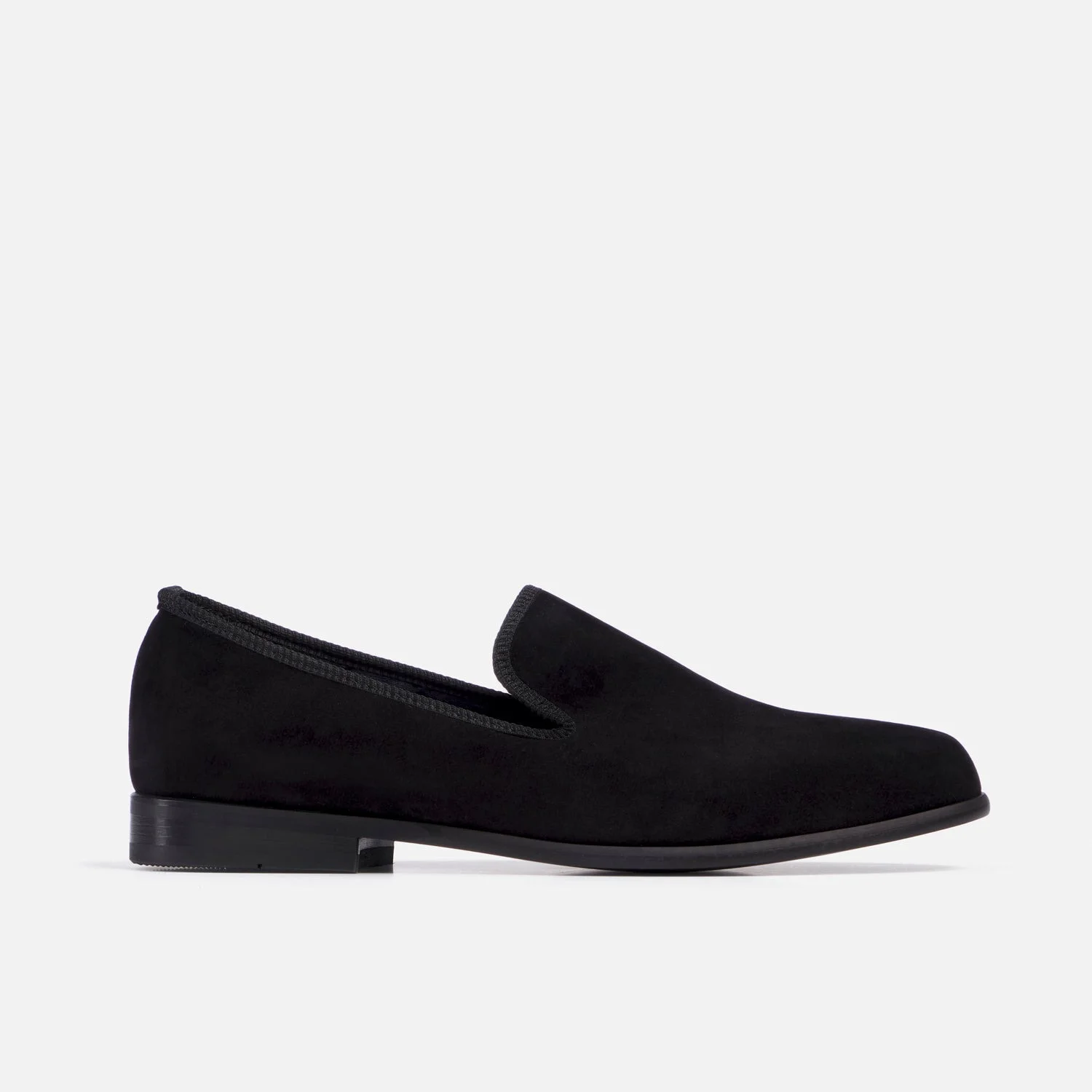 These handmade black loafers will add some contemporary flair to casual and tailored looks. Crafted from a custom matte black upper and compounded rubber sole, the stealthy all-black finish is a sophisticated tribute to D+D's legacy of understated luxury. Finished with quilt padding to ensure a comfortable stride, they are a practical option to versatile footwear. SPECIFICATIONS Sole 20mm compounded rubber sole Upper Soft Italian suede Lining Quilted cotton lining Packaging All our packaging is made from recycled materials Dust Bag Comes with a D+D organic cotton dust bag
