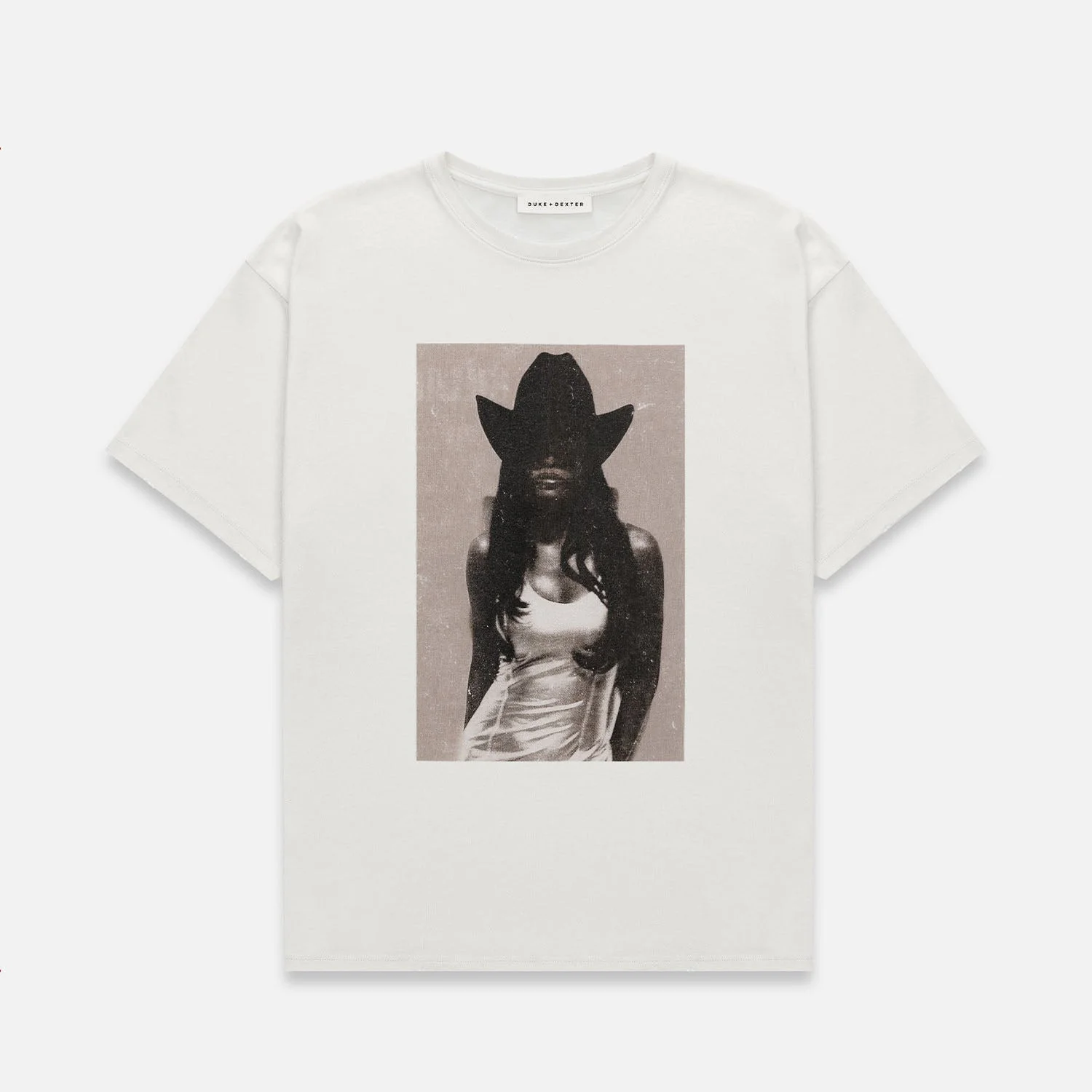 This Vintage White T-Shirt is printed with our Duke Cowgirl graphic at the chest. With the collection’s title at the back, it’s made from 220GSM cotton-jersey that’s washed and sun-faded for a naturally worn-in look and feel. SPECIFICATIONS Fit Relaxed Composition 100% Cotton Weight 220gsm Detail Water based screen print. Vintage wash Packaging All our packaging is made from recycled materials Origin Handmade in Portugal
