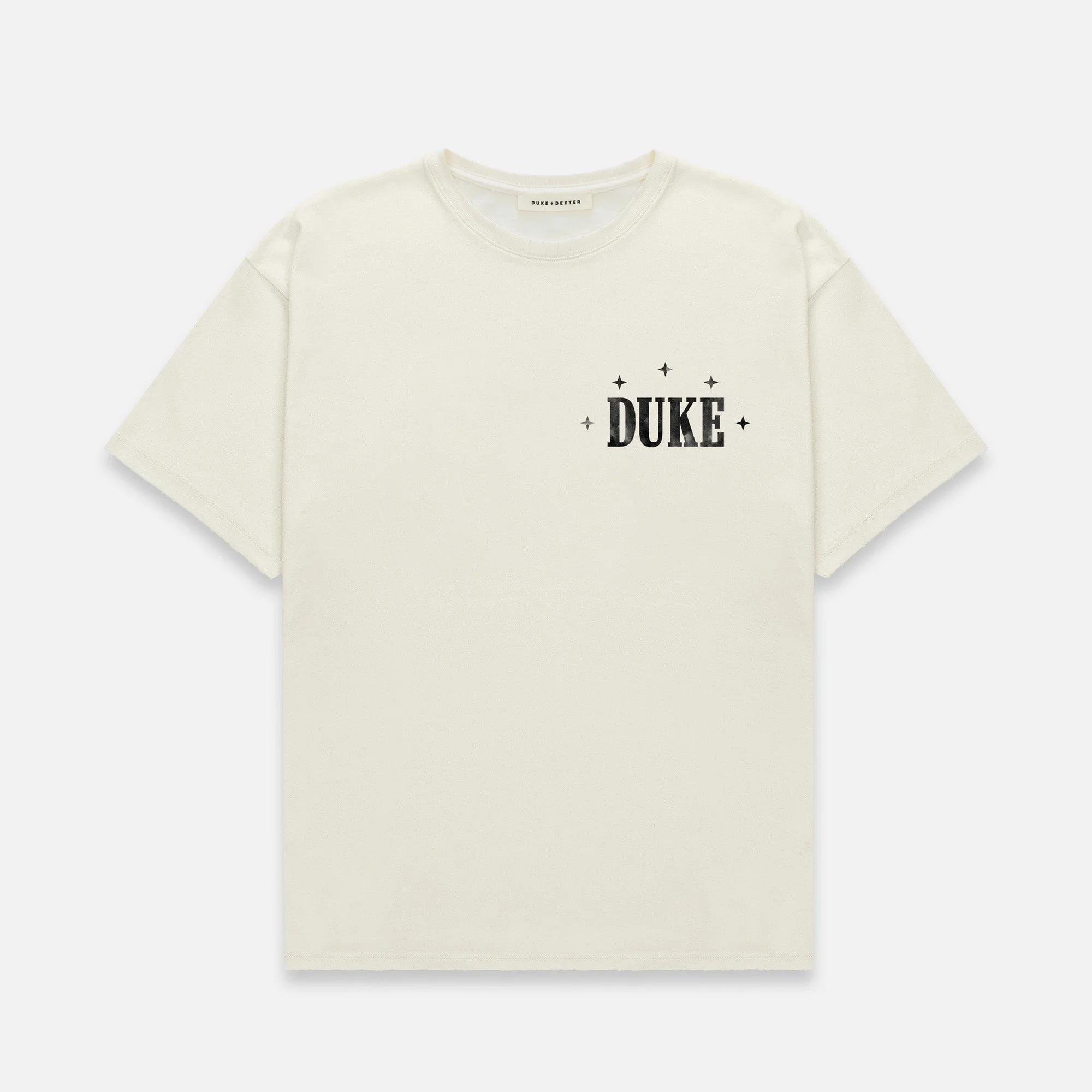 Part of the Duke Plus collection, the Vintage White T Shirt is screen-printed with our namesake logo at the front and back using water-based inks. It’s been made in Portugal from substantial cotton-jersey and stone-washed for a worn-in look and feel. SPECIFICATIONS Fit Relaxed boxy fit Composition 100% cotton Weight 220gsm Print Screen printed in water based ink Packaging All our packaging is made from recycled materials Origin Handmade in Portugal