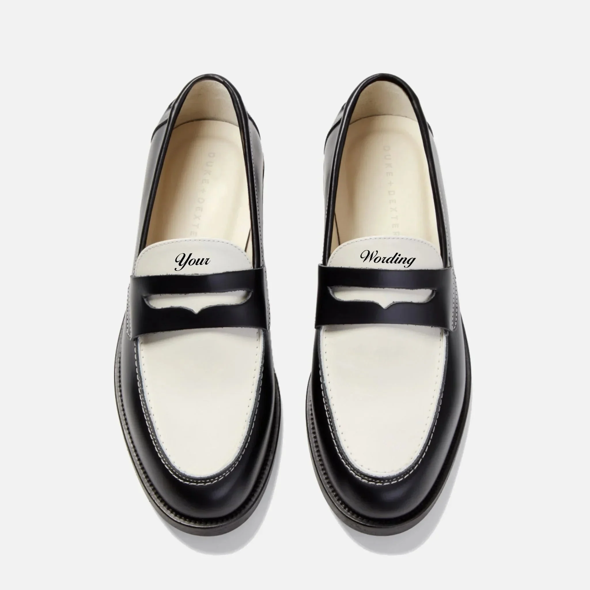 Please note – Custom hand-painted items can take up to 6 weeks for completion during peak periods. Beyond the basics, we love to make a shoe that no one else can. It’s why we off the chance to create something truly personal to you. Any word or phrase, hand-painted by our in-house artist Katie onto the top of the vamp of your Wilde Penny Loafer, in any colour you choose. These are for personals. The D+D way. SPECIFICATIONS Sole 25mm compounded rubber sole Upper Premium durable Italian leather Lining Tonal, off-white leather lining Detail Hand-painted to order Production Handmade in England Packaging All our packaging is made from recycled materials Dust Bag Comes with a D+D organic cotton dust bag