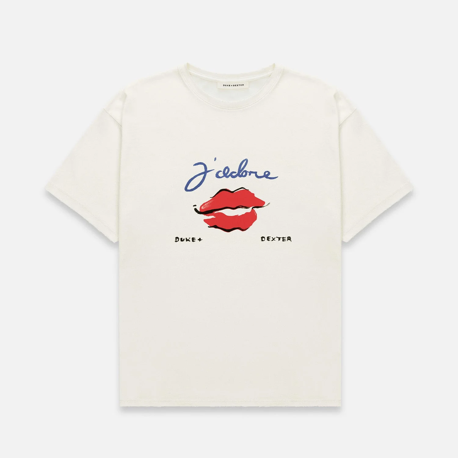 The Duke Icons collection is a celebration of our signature motifs, from Mon Cheri to J'adore. This T-shirt is cut for a relaxed fit from 220GSM cotton-jersey and washed for a ‘future vintage’ aesthetic. SPECIFICATIONS Fit Relaxed Fit Composition 100% Cotton Weight 220gsm Detail Water based screen print on vintage white Packaging All our packaging is made from recycled materials Origin Handmade in Portugal