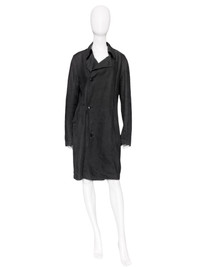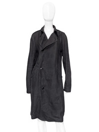 Ann Demeulemeester Spring 2006 Men's Grey Hemp Trench Coat Jacket XXS Size: XXS Shoulder: 18” Armpit to armpit: 20” Length: 42” Sleeves: 27” Measurements are measured on one side with garments laid flat (Waists and Hips are doubled) and are provided as a courtesy only- not a guarantee of fit. Notes: A minimal asymmetrical coat from Ann Demeulemeester from Spring 2006 menswear Simplistic in its design, with four front button closure and button on the back slit Made from a soft, breathable hemp that’s perfect for even hot weather Made in Italy Composition: 100% Hemp Condition: 4/5 (Mint condition, little to no signs of use) Defects: Theres feel of use, there is noticeable discolouration on the lower back Price(including shipping): $300
