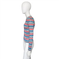 Balenciaga Website Url glitter jacquard knit striped sweater top 38 Yr:ss17 SZ:38 A stunning top from Demna Balenciaga, with "HTTP://WWW.BALENCAIGA.COM/090" wordings. The piece is made from glitter/reflective material and sparkles under light. A medium tight fit, with stretch should fit a it36 comfy and it38 like the model pic. No significant sign of usage, expect few loose threads. Wash tag was cut. Measurements: Shoulders:15" Chest:16" length:21" Sleeves:23"