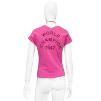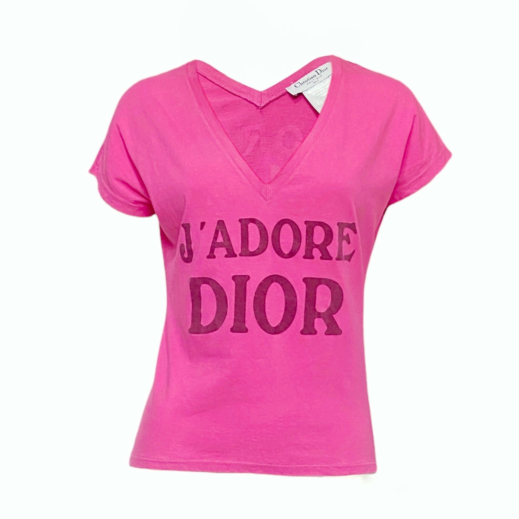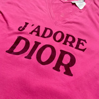 Christian Dior Fall 2003 Galliano “J’adore Dior” pink low neckline tee 42 Sz: Fr38/ IT42 Why every celeb is wearing this tee? It obvious that Galliano’s designs for dior are just impeccable and hard to resist. This t-shirt features a rare low neckline with “J’dore Dior” print, also a “World Champion 1947” to commemorate the establishment of the Christian Dior Maison. The garment is in great condition, with a slight mark on the back and some minor wear, great for ppl who are sustainable it-girls. Measurements: Chest:17” Length:23” Sleeves:5” $500