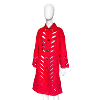 Dior fw02 Galliano runway long red cut out coat with scarf Sz: S Legendary items from legendary runways, a longer iteration than the runway's, a strikingly beautiful red wool with cut out details all over, with an exclusive scarf that you won't find anywhere else. Duffle coat with toggle closure and two very large patch pockets. A eye-catching red with purple inside, easy to pair with pink or just black. Mint condition, no defects. Measurements: Shoulders: 19" Chest:20" Length:43" Sleeve:20" Scarf: Length:70" Width:7"